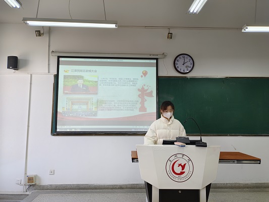 首先,管欣悦同志以江泽民同志追悼大会为切入点,介绍了大会的主题。随后,她从目光远大、审时度势,信念坚定、处事果断,尊重实践、与时俱进,尊重群众、关心群众四方面介绍了江泽民同志的优秀品格和高尚风范,强调江泽民同志总是紧紧把握时代发展脉搏和契机,坚持从党和人民活生生的实践出发总结经验、寻找路子,脚踏实地而又开拓进取。江泽民同志的优秀品格和高尚风范将永远教育和激励我们。最后,刘国总结会议,中华民族的伟大复兴事业,凝结了包括江泽民同志在内的一代又一代共产党人的心血和奋斗。前进道路上,学生党员要认真学习贯彻党的基本理论、基本路线、基本方略,深刻领悟“两个确立”的决定性意义,增强“四个意识”、坚定“四个自信”、做到“两个维护”,为全面建设社会主义现代化国家,实现中华民族伟大复兴贡献力量。至此会议圆满结束。