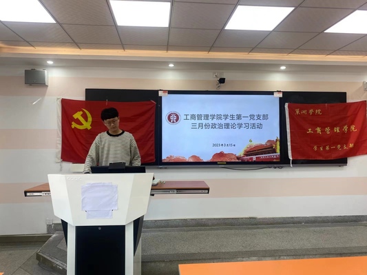 为深入贯彻落实习近平总书记对深入学雷锋活动的重要指示,强化学生党员责任担当,积极发挥党员先锋模范作用,工商管理学院学生第一党支部于3月15日上午在博学楼405开展三月份政治理论学习。本次学习以习近平总书记对深入开展学雷锋活动作出的重要指示为主题,由工商管理学院学生第一党支部书记许沙主持,工商管理学院学生第一党支部全体学生党员参加。