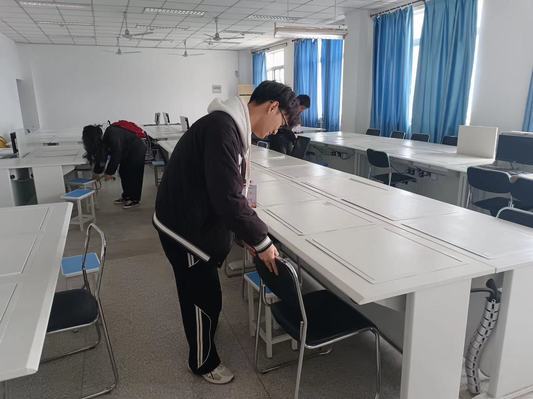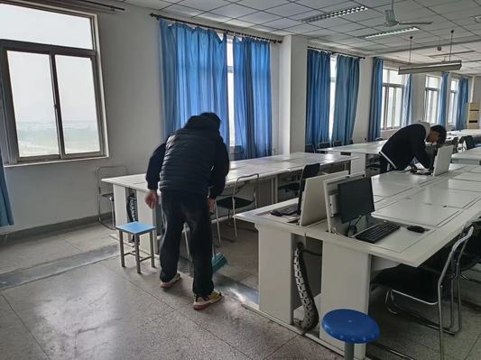 首先,赵翔同志将支部成员进行分组。随后,支部成员各司其职,在自己的分工岗位上辛勤清扫,积极合作。扫地拖地,倾倒垃圾,不放过任何一个卫生死角,在大家齐心协力的合作下,清扫工作圆满完成。最后赵翔同志检查卫生是否打扫干净后,大家有序离开实训室。至此活动圆满结束。