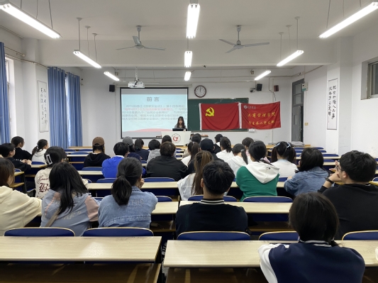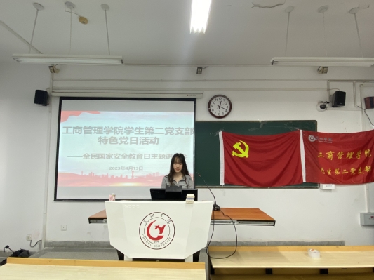 为引导同学们树立国家安全意识,增强防诈骗意识和能力,工商管理学院学生第二党支部于4月13日中午在博学楼316教室开展“国家安全日讲座”特色党日活动。此次会议由学生党员陈楼主持,辅导员李梦雨出席指导,工商管理学院学生第二党支部部分党员及22级班团干部共同参加。