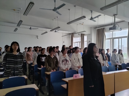 首先,参会人员全体起立,奏唱国歌。接着,支部书记任洁宣布大会开始,并要求转正党员从思想、学习,工作和生活四个方面总结自己在预备期的表现以及对未来的规划。随后,黄乐苹等13位同志依次进行发言,13位同志的发言表明自己在预备期的积极态度,时刻以党员的身份严格要求自己,将理论与实践相结合。同时,由支部正式党员评价其在预备考察期间的综合表现,并就能否发展为正式党员给出明确意见。评价完毕,全体正式党员进行投票是否同意各位预备党员成功转正,最终全票通过。最后,任洁带领本批次转正党员重温入党誓词,党员们宣读声音高亢激昂,铿锵有力,展现出了对党崇高的敬意。至此,本次大会圆满结束。