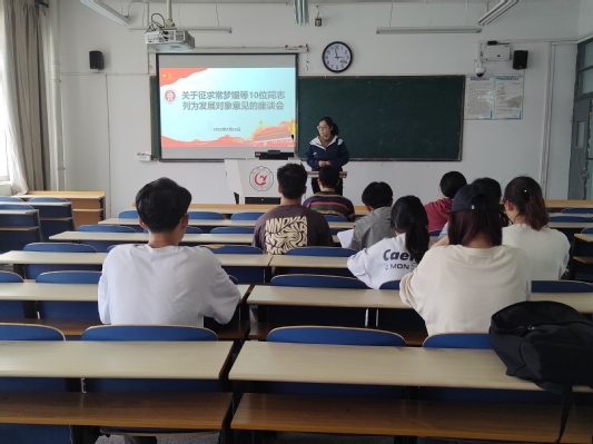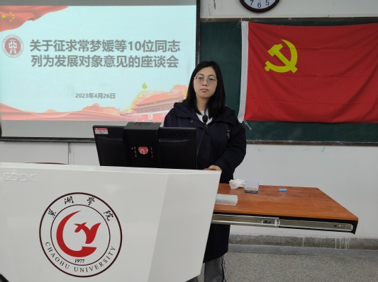 首先,任洁讲述本次座谈会的会议流程,她表示本次会议意在对常梦媛等10位同学在思想、学习、工作以及生活等方面强化作风建设,同时表示希望每位代表以严谨、公正的态度发言。接着,由参会人员对常梦媛等10位同学的综合表现进行客观公正的评价,并就政治素养、道德品行、学习生活等方面发表个人意见。大家认为,10位同学从思想和行动上都符合转为发展对象的条件,同意确定为发展对象。最后,任洁对本次大会作总结发言,对大家提出新的要求。她提到党员发展对象首先要端正自己的思想,要认真学习党的知识,希望全体党员要加强学习,不忘初心,牢记使命。至此,本次会议圆满结束。