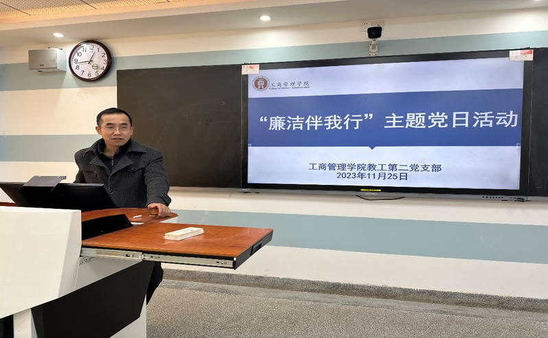 11月25日,工商管理学院教工第二党支部在博学楼410开展了关于党风廉政建设的交流研讨会。首先,在支部书记吴克平的带领下重点学习了《习近平关于党风廉政建设和反腐败斗争论述摘编》和中共中央办公厅《关于加强新时代廉洁文化建设的意见》的相关内容。随后,全体党员教师观看了廉洁警示教育片《缺失的敬畏》并展开了研讨。吴克平书记认为廉洁是一种道德品质,是每个人都应该具备的基本素质。在日常工作中,我们党员教师更应该始终坚持公正、公平、公开的原则,遵守职业道德和法律法规,廉洁需要从小事做起,勿以善小而不为,勿以恶小而为之。沈爱忠老师指出高校普通教师要注意廉洁思想建设,在科研经费使用中要合理规范,将经费用在科研中,禁止挪作他用,不得违反财务制度。