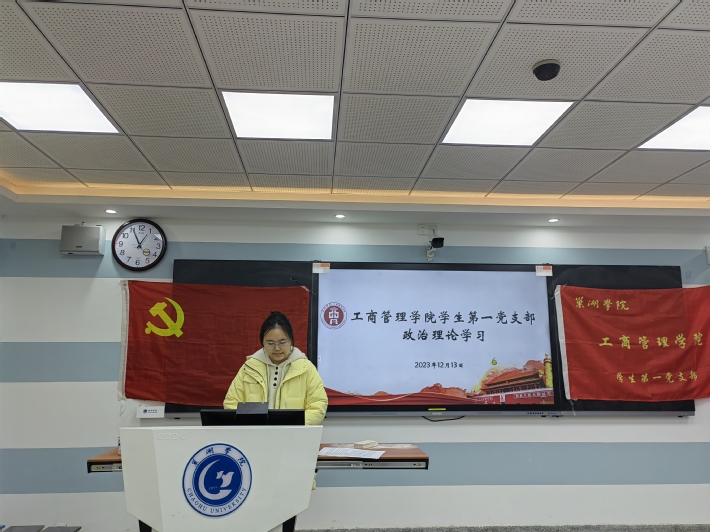 为认真学习贯彻习近平总书记重要讲话精神,深刻领会精神实质,工商管理学院学生第一党支部于12月13日中午在博学楼410教室开展十二月份政治理论学习。本次学习由工商管理学院学生第一党支部书记许沙主持,工商管理学院学生第一党支部全体成员参与。