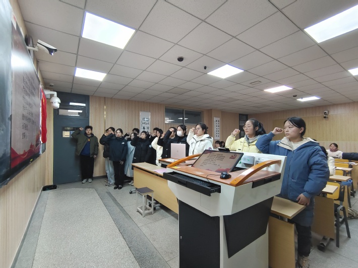 会议伊始,与会人员在支部书记储岚霖的带领下奏唱国歌。接着,支部书记储岚霖宣布大会开始。谷翔宇等14位同志依次进行发言,从思想、学习和生活三个方面总结自己在入党积极分子期间的表现以及对未来的规划,表示将继续坚持理论与实践相结合,时刻以党员的身份要求自己,践行党员职责。其他与会党员也依次对几位同志的表现进行评价,并就其能否发展为中共预备党员发表意见。经过全体正式党员的无记名投票,谷翔宇等14位同志均以全票通过同意吸收为中共预备党员。支部副书记赵莉带领新吸收的预备党员进行入党宣誓,大家宣读声音高亢激昂,铿锵有力,展现出了对党的崇高敬意。随后,余宝宝等6名预备党员依次向大会汇报了自己在预备期间的表现、思想认识、工作学习等方面的情况,表达了自己希望成为一名正式党员的意愿和决心。支部党员充分评议后进行了无记名投票,表决通过了6名预备党员的转正申请。支部书记储岚霖宣读了表决结果,对新转正的党员表示祝贺,希望他们能够继续努力,严格要求自己,发挥党员的先锋模范作用。会议在高昂的国际歌中落下帷幕。