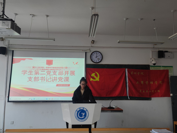 为引导广大学生党员深入学习党的历史和理论知识,坚定信念,弘扬党的优良传统,激励学生党员在今后的学习和工作中践行初心和使命,工商管理学院学生第二党支部于12月20日下午在博学楼511开展支部书记讲党课活动。本次党课以习近平总书记在中央党校(国家行政学院)中青年干部培训班开班式上发表重要讲话为主题,工商管理学院辅导员李梦雨主持,全体党员参与。