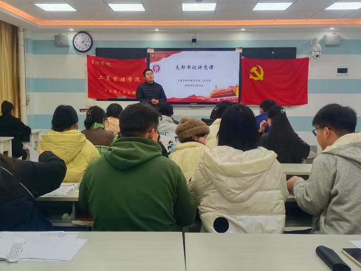 为引导党员牢固树立先锋模范意识,进一步坚定理想信念,牢记初心使命,工商管理学院学生第三党支部于12月14日下午在博学楼410教室开展支部书记讲党课活动。本次活动以学习新党章为主题,工商管理学院学生第三党支部书记刘国主持,全体党员参与。