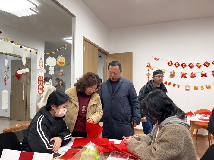 工商管理学院学生第一党支部开展写贺卡、剪窗花、写福字、猜灯谜、套圈的传统文化活动,支部成员们积极地参与到各项活动中,在贺卡中写下自己对新一年的期许以及对家人朋友的祝福,并将贺卡装入信封中保存。通过写福字带来好运和祝福,小小的福字,包含了心中美好的祝福,在书写中感受年味气息、收获快乐。管超也在现场泼墨挥毫,书写“福”字。管超在书写的过程中告诉大家,写福字不仅仅是一种传统习俗,更是一种寄托了美好愿望的文化表达,他希望通过书写福字,能够为大家带来新年的祝福和好运,让每一位党员同志在新的一年里能够以更加饱满的热情投身到党的学习和工作中,支部在今后可以多开展相关活动,在学习与传承中华传统文化的同时,增强党员的凝聚力,发挥党员的先锋模范作用。在猜灯谜活动中,金晶也展现出了极高的热情与智慧,与同学们一起思考、探讨,共同寻找答案,不仅加深了师生之间的了解与交流,更在无形中传递了知识、拓宽了视野。学生党员王梦真表示通过此次活动让我们更加深刻地感受中华文化之美,传承中华传统文化是我们每一位学生党员的责任与使命。学生党员戴婷则表示此次活动充满了浓浓的新春气息,感受到党支部老师对我们的关心与爱。学生党员们还参与了剪窗花、猜灯谜、套圈活动,用剪刀创造精美的图案,用思维解开文字的深意,用技巧套中礼品,收获快乐。