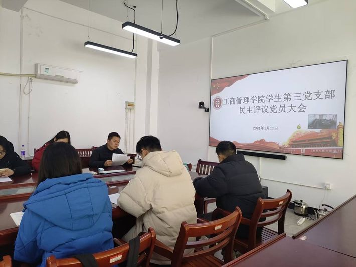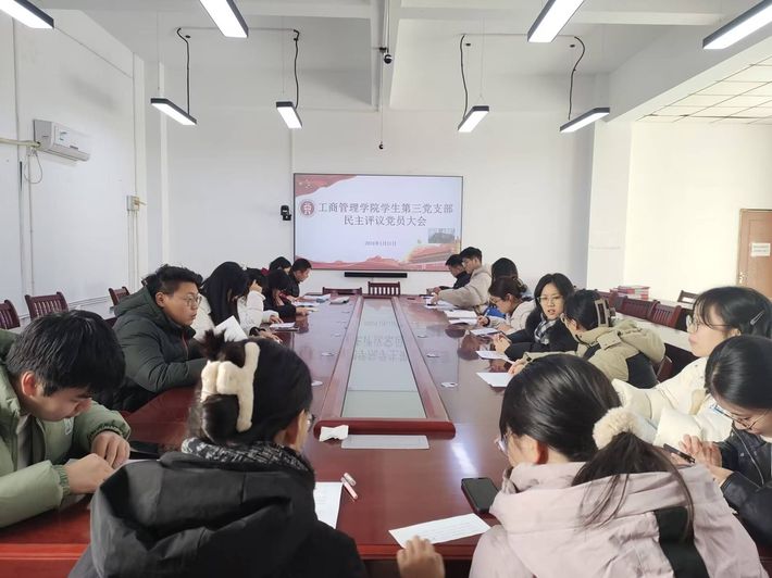 为进一步提升党支部组织力和凝聚力,推动支部党员加强政治思想修养提高自身能力,工商管理学院学生第三党支部于1月11日中午在博学楼一楼会议室开展支部民主评议会。本次活动由学生第三党支部书记刘国主持,支部全体党员参加。