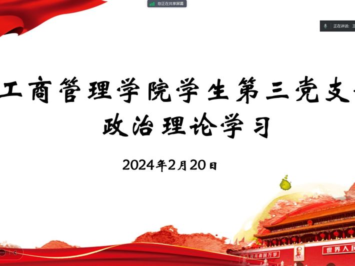 为深入推进党的自我革命,保持党的先进性和纯洁性,加强新时代廉洁文化建设,工商管理学院学生第三党支部于2月20日下午在线上开展二月份政治理论学习。本次会议以学习习近平总书记在二十届中央纪委三次全会上的重要讲话精神为主题,工商管理学院学生第三党支部书记刘国主持,全体党员参与。