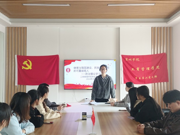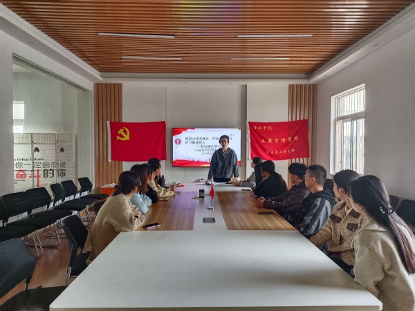 为加强党支部建设,提高学生党员的政治素质和思想觉悟,工商管理学院学生第二党支部于3月27日中午在巢有范党员服务站开展“做堪当强国建设、民族复兴重任的可靠接班人”政治理论学习活动。此次会议由辅导员李梦雨主持,工商管理学院学生第二党支部全体党员共同参加。