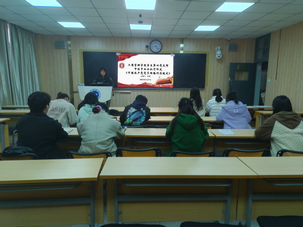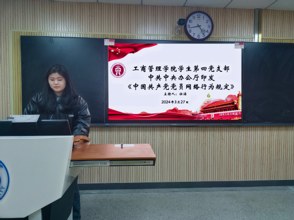 为积极营造健康向上、风清气正的网络环境,推动形成良好的网络生态,使各党员同志能够自觉在思想上政治上行动上同以习近平同志为核心的党中央保持一致。工商管理学院学生第四党支部于3月27日下午在博学楼514教室开展本次政治理论学习活动。本次活动由学生第四党支部书记任洁主持,全体党员共同参加。