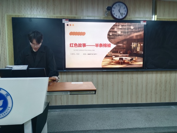 首先,任洁指出红色故事是学习党史,了解党情的良好形式,希望同学们可以学习共产党员的精神,坚定信念,并预祝本次活动圆满结束。接着,由张镇同学以PPT的形式向大家介绍红色故事——半条棉被,在红军长征时期,三名红军借宿村民徐锦秀家中,见到徐家境贫寒,临走的时候,女红军将半条被子留给了徐锦绣的故事,新时代物质生活逐渐丰富足的我们早已不缺这半条被子,但是这条被子的精神应该是我们每一名共产党员所需要的。随后,支部成员进行讨论并依次分享自己的感悟,半条被子的背后其实是三位女红军战士宁可自己受苦也不让群众吃亏的为民情怀,老百姓拥爱军队,红军赢得了人心。最后,任洁对本次活动进行总结,新的长征路上,半条被子的暖鼓励着我们敢于担当,勇于奉献,勇于迎难而上,砥砺前行,自觉做起而行之的实干家,当攻坚克难的奋斗者。