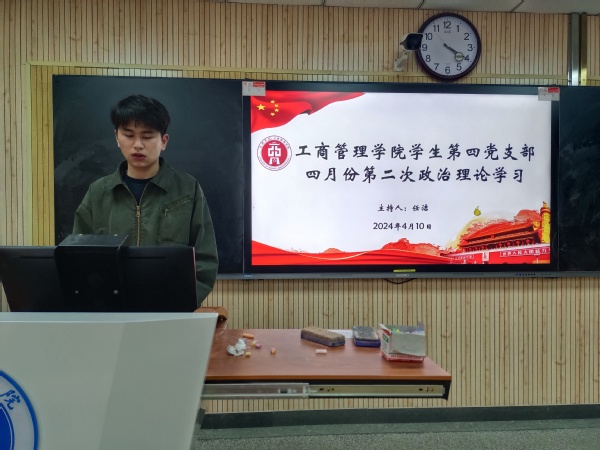 为学习贯彻党的二十大精神,全面建设社会主义现代化国家、全面响应中华民族伟大复兴而团结奋斗的伟大号召,工商管理学院学生第四党支部于4月10日下午在博学楼516教室开展本月政治理论学习。本次活动由学生第四党支部书记任洁主持,学生第四党支部全体党员参与学习。