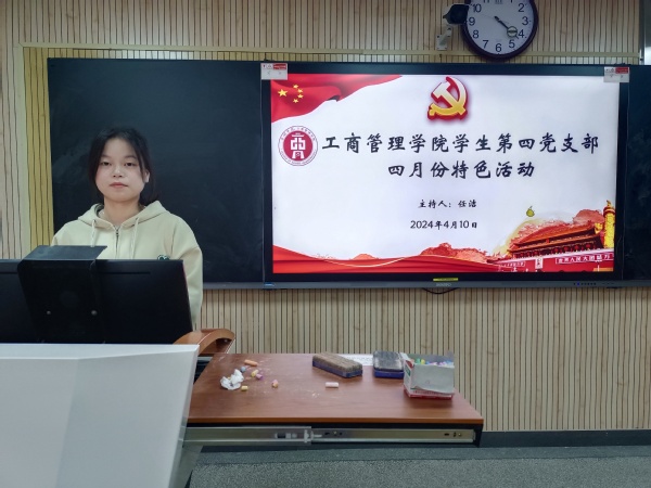 为传承和弘扬红色文化,激励学生党员不忘初心、牢记使命,工商管理学院学生第四党支部于4月10日下午在博学楼516教室开展本次党史故事分享会。本次活动由工商管理学院学生第四党支部书记任洁主持,全体党员共同参加。