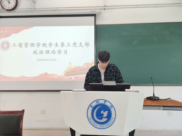 为增强支部成员为人民服务的意识,筑牢人民群众的主体地位,充分发挥群众优势,工商管理学院学生第三党支部于4月24日中午在慎思楼北302教室开展四月份政治理论学习。本次会议以学习习近平总书记坚持人民至上讲话精神为主题,工商管理学院学生第三党支部书记刘国主持,全体党员参与。