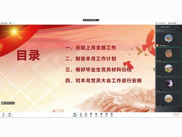 为加强党支部建设,做好材料整理工作,同时对支部述职和民主评议工作进行安排分工,工商管理学院学生第二党支部于5月14日晚上通过腾讯会议召开党支委会,本次会议由工商管理学院学生第二党支部书记袁晓琳主持,党支委成员徐强艳、储丹丹、傅先平、张杰参会。