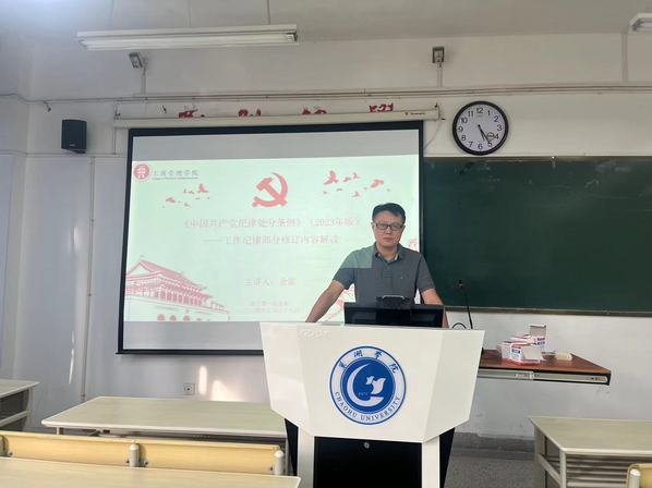 为推动党纪学习教育走深走实,引导支部党员进一步强化纪律意识,做到忠诚干净担当,5月29日上午,工商管理学院教工第一党支部书记余雷为支部党员教师讲授了一堂党纪学习教育专题党课。