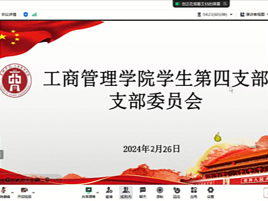 为积极落实本月党支部具体工作安排,分配好工作职责,工商管理学院第四党支部于2024年2月26日下午召开线上支部委员会。本次会议由学生第四党支部书记任洁主持,学生第四党支部支部委员会成员参与。
