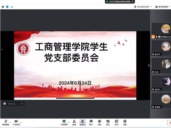为进一步加强学生党支部的组织建设,确保党支部工作的规范化和系统化,工商管理学院学生第二党支部于6月24日下午通过腾讯会议召开党支委会,本次会议由工商管理学院学生第二党支部书记袁晓琳主持,党支委成员徐强艳、储丹丹、傅先平、张杰参会。