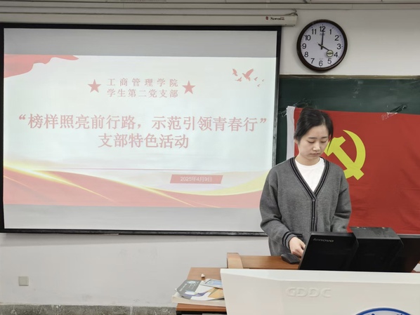 为引导党支部成员汲取榜样精神,在示范带动下坚定理想信念,工商管理学院学生第二党支部于4月9日下午在博学楼511教室开展“榜样照亮前行路,示范引领青春行”支部特色活动 。此次活动由工商管理学院学生第二党支部书记袁晓琳主持,工商管理学院学生第二党支部全体党员及入党积极分子参加。
