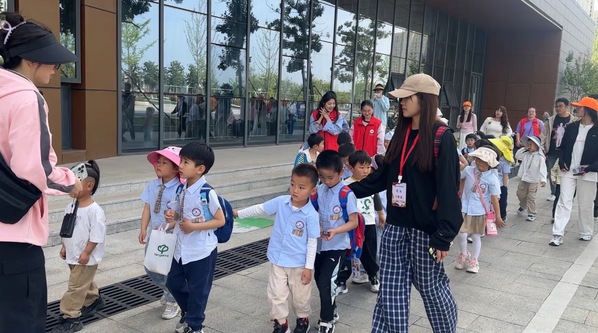 活动当日,幼儿园组织学生走进校园春游。学生党员王婉欣、朱青青主动承担起志愿者工作,化身“校园小导游”与“安全守护者”。在校园各景点,她们耐心为小朋友们讲解学校历史和特色建筑,用生动有趣的语言和故事,激发孩子们对高校的向往;在活动场地,她们时刻关注小朋友的安全,提醒他们注意脚下、有序活动。面对孩子们的提问,她们始终面带微笑,认真解答,现场欢声笑语不断。