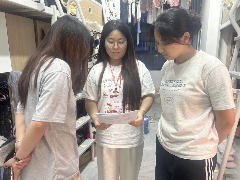 活动中,学生党员分组走访宿舍,为同学们提供细致的安全指导。针对离校同学,重点提醒信息报备、断电断水、火患排查及门窗锁好等事项,确保不留安全隐患;对留校同学,则围绕生活安全、规范用电用水及心理调适进行交流,叮嘱注意饮食卫生、保持积极心态,遇到困难及时求助;对于参与“三下乡”实践的同学,着重强调住宿安全与团队纪律,帮助他们在社会实践中保障自身安全,展现良好精神风貌。