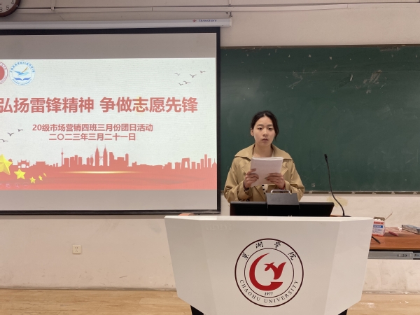 为弘扬雷锋精神,发扬中华传统美德,20级市场营销四班于3月21日上午在慎思楼中202教室召开“弘扬雷锋精神 争做志愿先锋”主题团日活动。本次团日活动由团支书徐倩主持,20级市场营销四班全体成员参加。