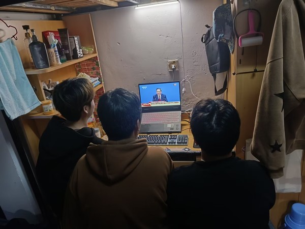 首先,李蕊说明了本次活动的具体内容和意义,并提醒同学们要认真学习全国两会精神内涵。随后,同学们在各寝室长的安排下组织观看全国两会会议动态视频,认真学习两会精神,并结合自身学习和生活实际展开讨论,畅谈感想体会,努力把两会精神转化为具体行动。最后,李蕊对本次主题活动作出总结,希望同学们能够在祖国的万里长空中放飞青春梦想,在时代的舞台上寻找发展机遇,为祖国贡献青春力量,努力学习,将个人发展融入到国家建设之中。