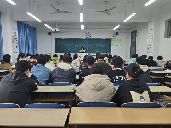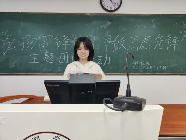 首先,查梦婷向同学们强调本次活动主要内容是弘扬雷锋精神,争做志愿先锋。同时,她表示雷锋精神是新中国成立以来一直鼓舞中国人祖祖辈辈的一种革命精神,深入贯彻了以爱国主义为核心的伟大民族精神,学习并弘扬雷锋精神,新时代的青年在所不辞。随后,由各团小组代表上台发言,分享学习雷锋精神的感悟以及雷锋的故事,通过学习雷锋事迹,使同学领悟雷锋精神中热爱党、热爱国家、热爱社会主义的崇高理想和坚定信念;服务人民、助人为乐的奉献精神;干一行爱一行、专一行精一行的敬业精神;锐意进取、自强不息的创新精神;艰苦奋斗、勤俭节约的创业精神。最后,查梦婷表示新时代新征程青年们需要发扬雷锋精神,需要学习雷锋这种乐观向上,积极作为的人生姿态,将雷锋精神融入生活和学习中,助力未来发展。
