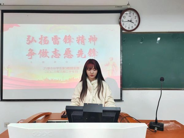 为提高同学们的思想道德水平,深刻学习雷锋精神,21级会计学专业三班于3月27日下午在博学楼315教室开展“弘扬雷锋精神,争做志愿先锋”主题团日活动。本次活动由团支部书记王虹雨主持,21级会计学专业三班全体成员参加。