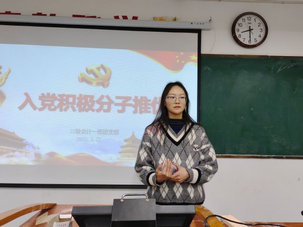 为加强班级团支部建设,充实共青团的新生力量的需要,增强共青团组织的凝聚力和向心力,22级会计一班于3月27日晚在博学楼203教室召开团员大会。本次会议由团支书牛肖文主持,辅导员李梦雨指导,22级会计一班全体团员参加。