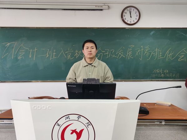 为公平公正推选入党积极分子和发展对象 ,推动班级同学进一步向党组织靠拢,为党组织注入新活力,21级会计学专业二班于4月6日在博学楼310教室召开入党积极分子和发展党员推优大会。本次会议由辅导员刘国主持,21级会计学专业二班全体成员参加。