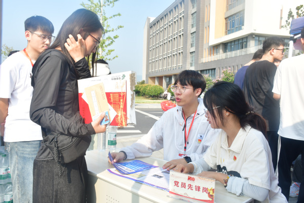 迎新现场,一支由学生党员组成的志愿服务队成为一道亮丽的风景线。他们用热情的微笑迎接每位新生及其家长,用贴心的服务做好咨询指引。