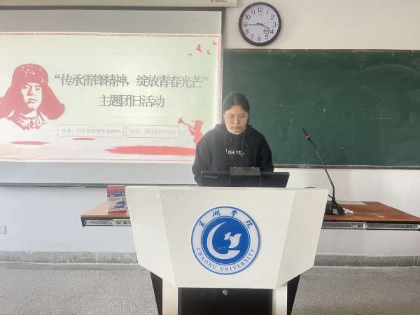 三月春风暖、一起学雷锋。为弘扬雷锋精神,进一步激发新时代青年大学生的社会责任感和奉献精神,倡导新时代文明新风尚,22级市场营销专业于3月24日下午在博学楼中514教室开展“弘扬雷锋精神,绽放青春光芒”主题团日活动。本次会议由辅导员许沙主持,22级市场营销专业全体成员参加。