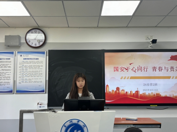 为进一步加强国家安全教育,了解国防安全的重要性,24级市场营销专业于4月14日下午在博学楼415教室开展“国安于心同行,青春与责共担”主题团日活动,本次班会由素拓委员陶荣主持,24级市场营销专业全体同学参加。