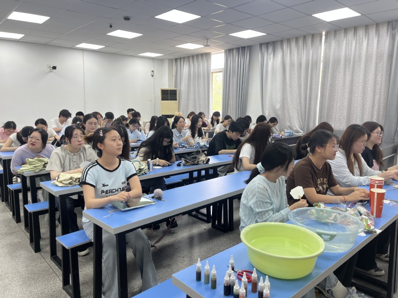 首先,阮浩介绍端午节作为中华民族四大传统节日之一,承载着千年历史记忆与文化基因。历经岁月沉淀,形成了赛龙舟、包粽子、挂艾草等丰富习俗,成为凝聚民族精神的文化符号。接着,班级同学们沉浸于漆扇的创作中,他们以传统端午元素为灵感,在水中滴入不同的颜色,呈现出多姿多彩的扇面,感受传统工艺的独特魅力。随后,心理委员吴冰倩以知识问答的方式向大家普及端午节的习俗,围绕端午民俗、诗词典故等内容设置题目,同学们踊跃抢答,在思维碰撞中深化对节日文化的理解。最后,阮浩对此次活动进行总结,大家共同梳理节日文化脉络,进一步巩固学习成果。