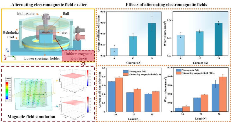 随着高端装备智能化、精密化发展,复杂电磁环境对机械系统关键零部件的摩擦学性能影响已成为制约装备可靠性的共性科学问题。本研究聚焦于交变磁场环境下钢/钢摩擦副的摩擦学行为演化机制,首次系统揭示了磁场强度、载荷及滑动速度多场耦合作用下摩擦系数、磨损率及磨屑形貌的动态响应规律,为解决航空航天、轨道交通等领域轴承材料在电磁干扰下的失效问题提供了理论依据。