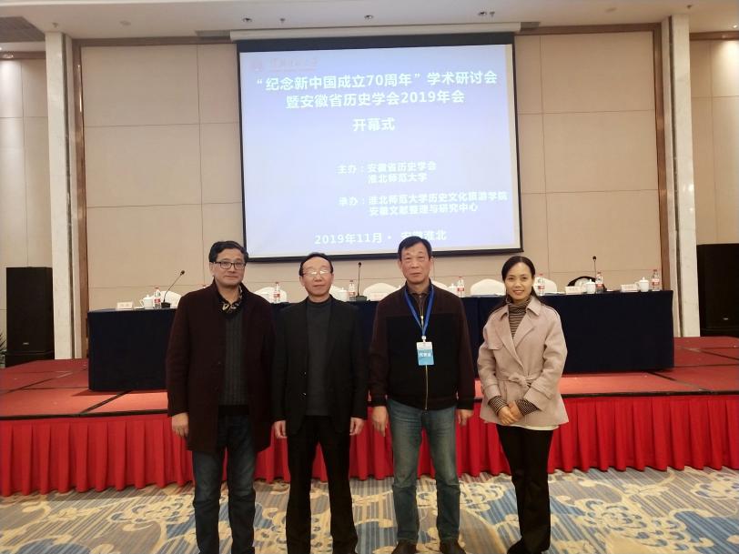 2019年11月23日,awc777万象城娱乐官网张安东教授、陈恩虎教授、杨松水教授和唐丽丽老师参加由安徽省历史学会主办,淮北师范大学历史文化旅游学院承办的“纪念新中国成立70周年暨安徽省历史学会2019年会”。