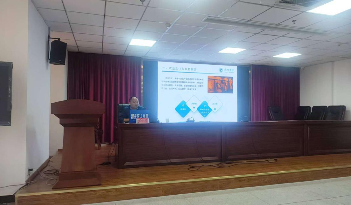 2024年10月12日下午,应阜阳市颍东区文化旅游体育局邀请,环巢湖研究中心研究员朱学同老师为阜阳市颍东区文化和旅游干部作乡村旅游产业发展专题培训。培训会由颍东区文化旅游体育局副局长梁静静主持,各乡镇、街道办事处分管文旅工作负责人,区文旅体局有关人员60余人参加培训会