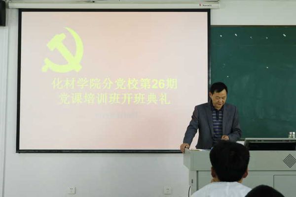 5月8日下午2:30,化学与材料工程学院分党校第二十六期党课培训班于慎思楼中103教室隆重开班。本次培训班由129名入党积极分子组成,学院分党委书记张继山主持开班典礼。