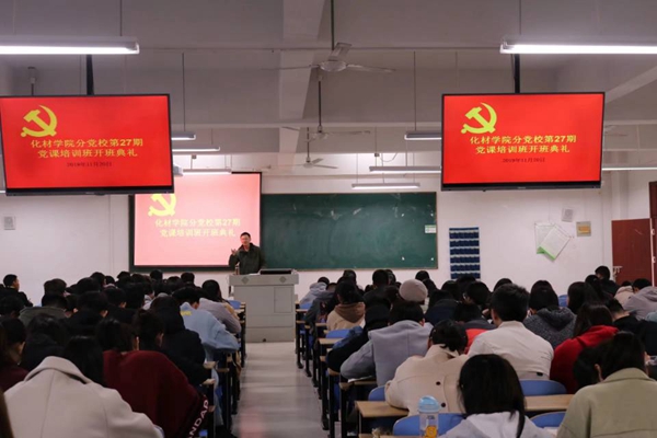 11月20日中午12:10,化学与材料工程学院第27期党课培训班开班典礼于慎思楼中101教室举行。本次党课由化材学院党委书记张继山主讲,化材学院第27期党校发展对象及入党积极分子参与此次党课学习。