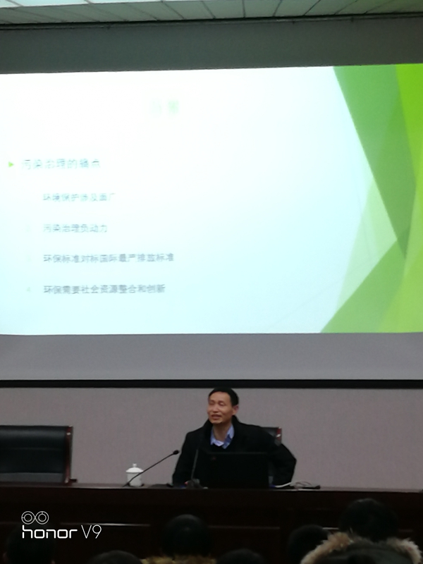 报告中,程学勤首先简要介绍了我国目前环境的基本现状,污染治理过程存在的难点、痛点,以及有关环境保护和经济发展只能二选一的误区。在此基础上,他以公司运行过程中发生的具体事情作为真实案例,向与会师生证实了环境治理与经济发展是可以相协调、实现可持续发展的。