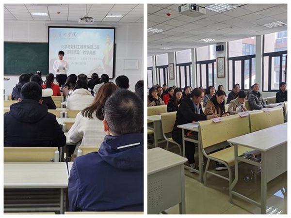 为深入贯彻习近平新时代中国特色社会主义思想,推进学院“三全育人”综合改革,进一步挖掘和丰富专业课程育人内涵,提升专业课教师课程思政教学能力。2021年11月24日下午2:30,化材学院在新教学楼南306举办了第二届课程思政教学竞赛,此次比赛,邀请了王新、彭贞、秦国旭、吴蓉、葛碧琛5位教师担任评委。院党委书记张继山、副书记宋明友,副院长鲁文胜、王小东以及全体教职工现场观摩比赛。