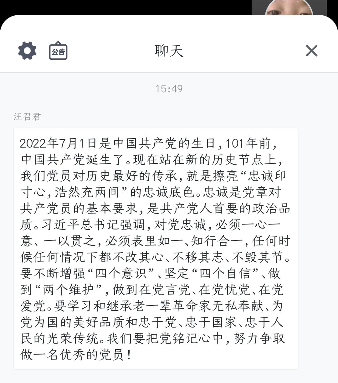 为庆祝中国共产党成立101周年,弘扬党艰苦奋斗的精神,坚定理想信念,提高广大学生党员的党性修养,6月30日,化材学院各学生党支部在线上组织开展“红心向七一,永远跟党走”主题党日活动,本次活动由各学生党支部书记分别组织,全体学生党员参与。