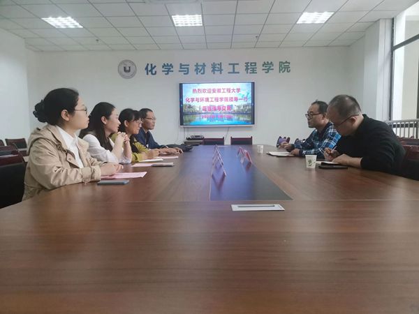 10月13日下午,安徽工程大学化学与环境工程学院材料与化工硕士点负责人高建纲一行来化学与材料工程学院进行研究生联合培养交流与宣传。双方在化学与材料工程学院会议室举行座谈会,出席座谈会的有化学与材料工程学院副院长、安徽工程大学兼职硕士生导师李宏林,应用化学系主任、安徽工程大学兼职硕士生导师秦国旭,安徽工程大学兼职硕士生导师王新运教授及尹艳君副教授,座谈会由李宏林主持。
