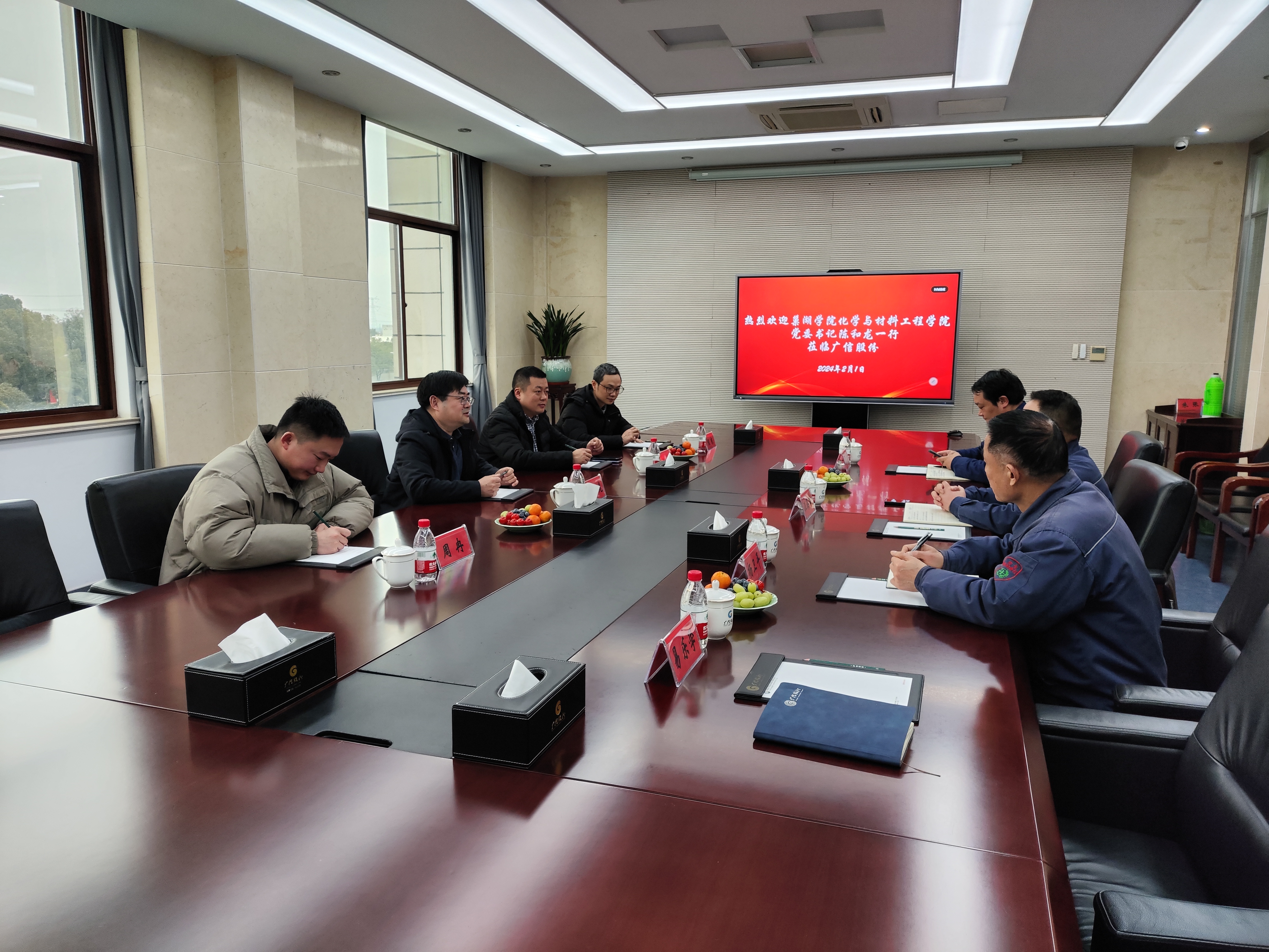 为深入了解学院学生专业实习情况,增进与实习基地的交流合作,拓宽学生就业途径,2月1日,化材学院党委书记陈和龙一行,赴广德市看望慰问在安徽广信农化股份有限公司的实习学生和优秀校友,并与企业代表洽谈深化合作事宜。