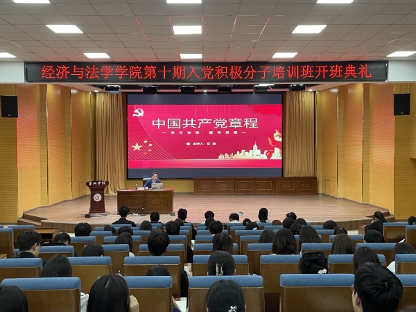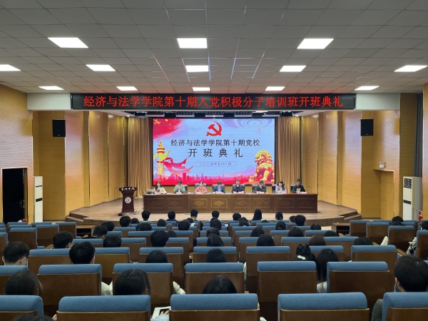 为深入学习贯彻党的二十大精神,充分发挥党校培养教育党员的主阵地作用,进一步加强学生思想政治教育,5月8日,经济与法学学院在求实楼报告厅举办第十期党校开班典礼暨党课第一讲。学院党委书记石庭,党委副书记、副院长施玮,党委副书记解雪梅,党委组织委员、党务行政秘书何东海以及学生党支部书记、辅导员出席典礼,典礼由班主任徐红杏主持,党校培训班全体学员参会。