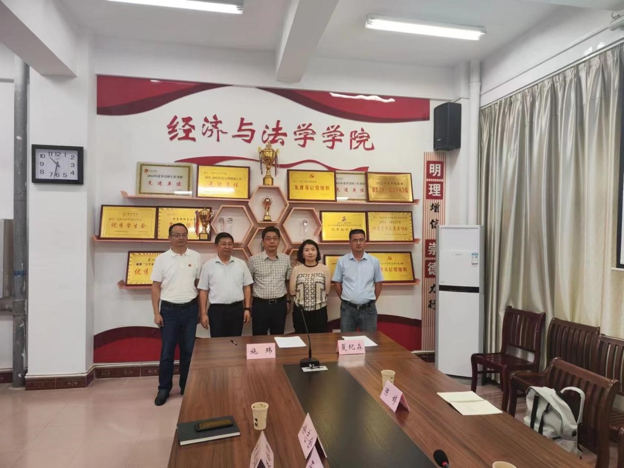 9月21日上午,常州大学史良法学院党委书记陈婷、副院长夏纪森一行来我院进行研究生联合培养签约仪式并调研交流。经法学院党委书记石庭、院长徐志仓、副院长施玮、法学系主任朱鹤群以及法学系教师代表出席本次会议。