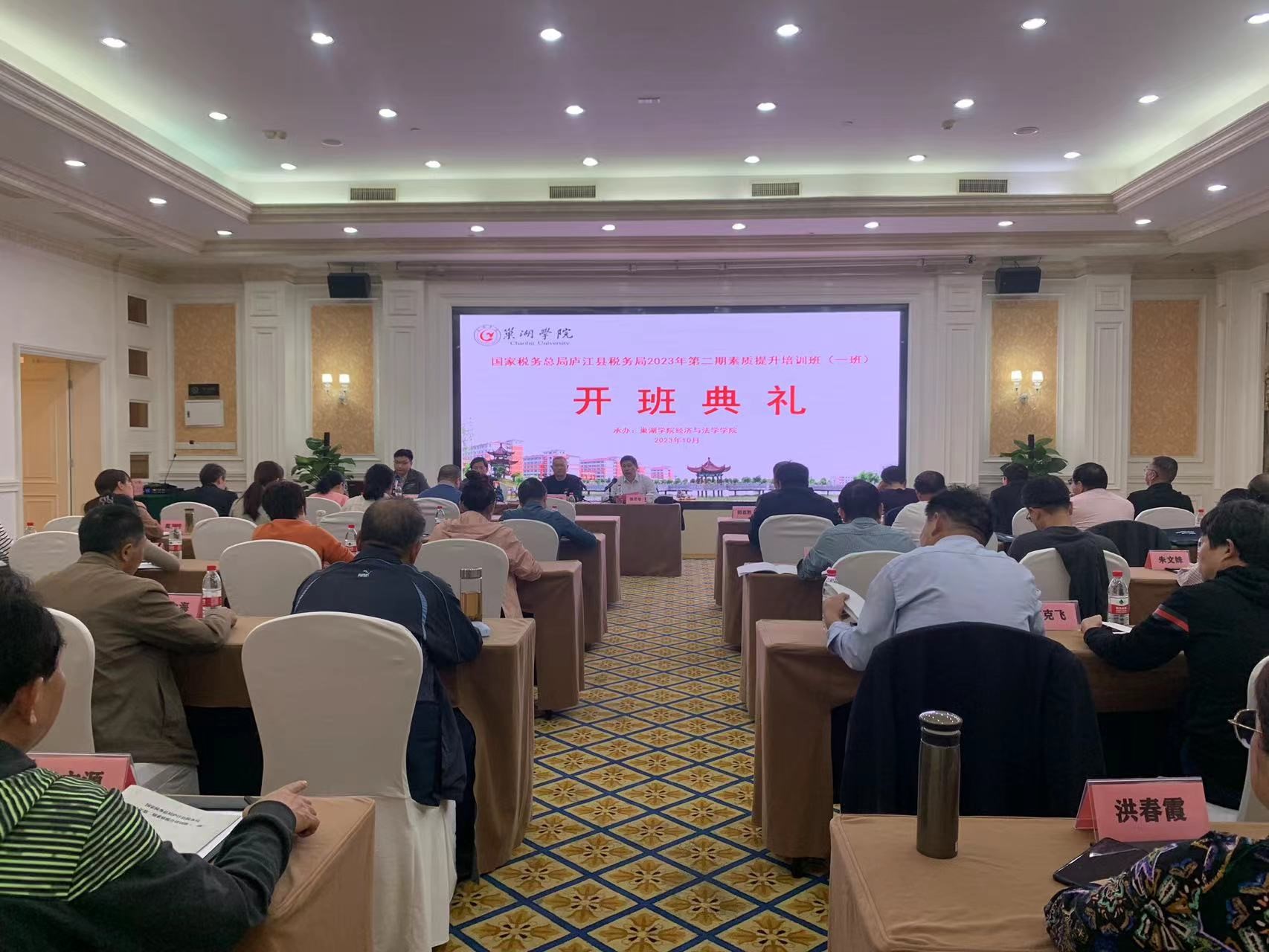 10月30日下午,由国家税务总局庐江县税务局委托awc777万象城娱乐官网经济与法学学院承办的“庐江县税务局2023年第二期素质提升培训班”顺利开班。本期培训共持续5天,主要采用专题讲座形式展开,重点围绕学习贯彻习近平新时代中国特色社会主义思想主题教育、党风廉政教育、数电票知识及电票平台相关操作、行政处罚法的税务适用、综合文稿写作、企业欠税管理、税务公文处理实务等内容,致力于全面提升新时期税务工作人员综合履职能力。